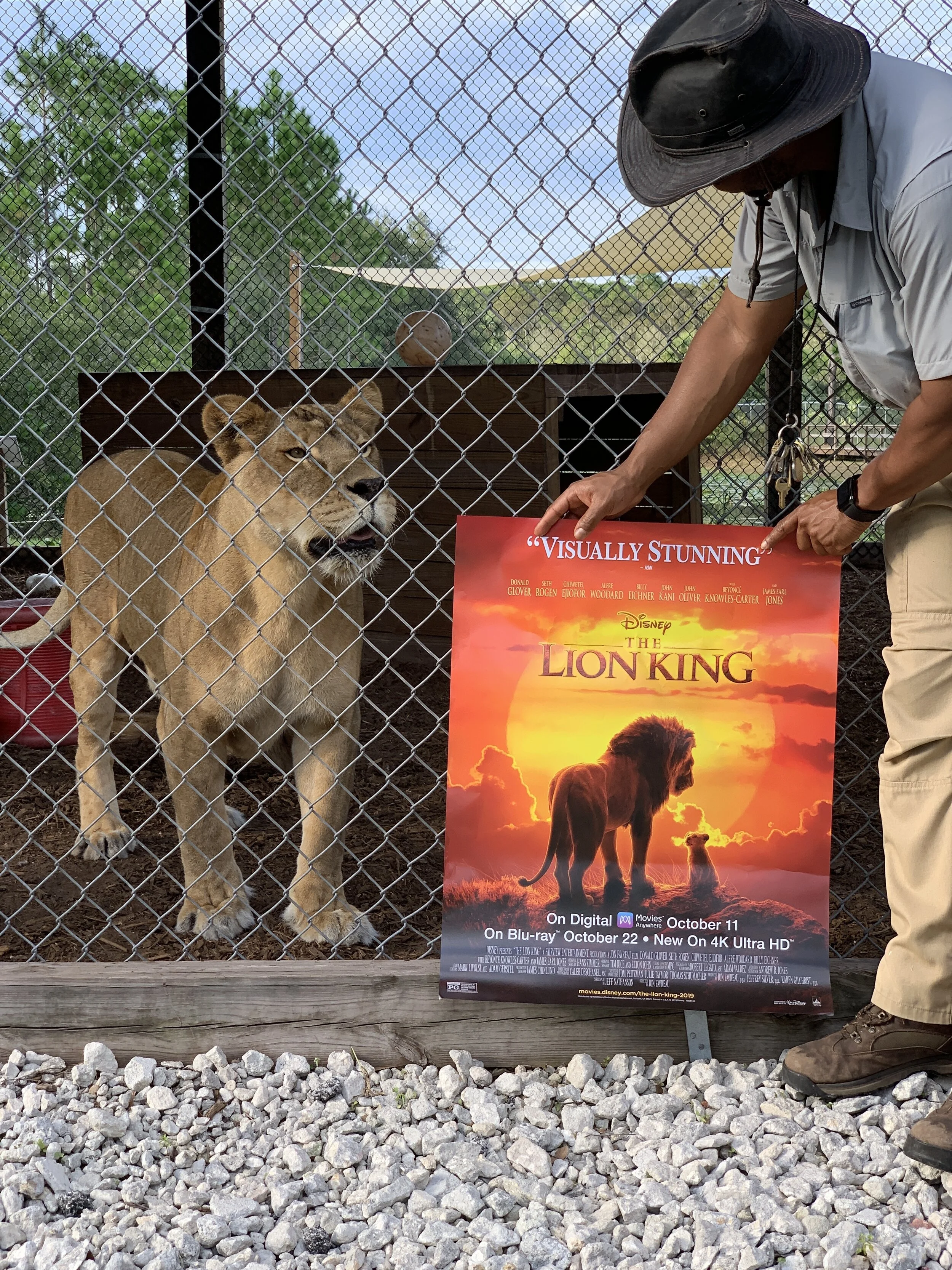 Yesterday Disney Studios invited us to a special event to celebrate the home release of The Lion King! The movie is now available on Digital and Blu-Ray to add to your collection. (Click here if interested in reading our review of the film.) We met up with a group of other Disney bloggers for a behind the scenes tour of Central Florida Animal Reserve to get up close and personal with some real life lions (and other big cats!). Read on to hear more about this amazing learning experience.