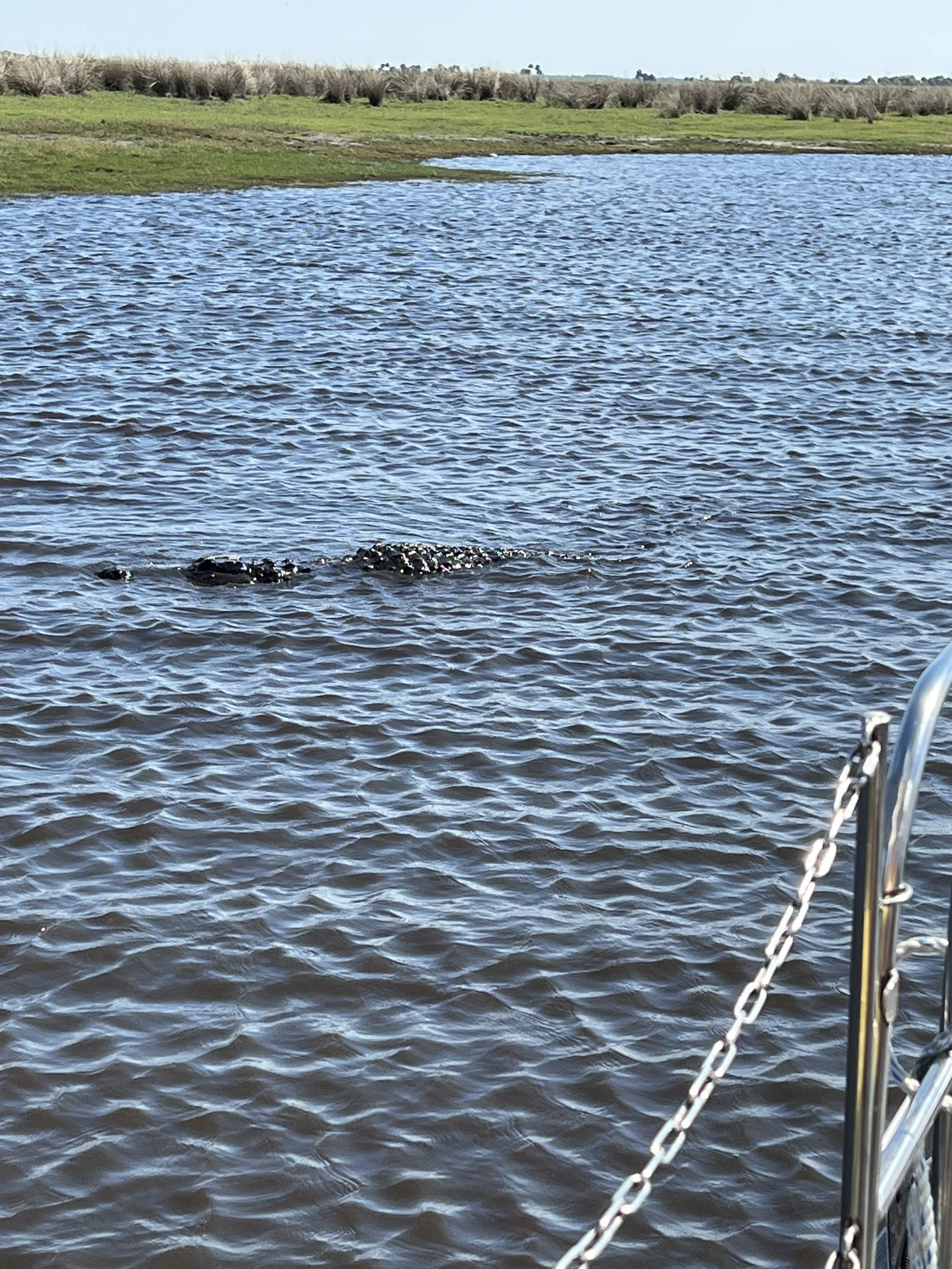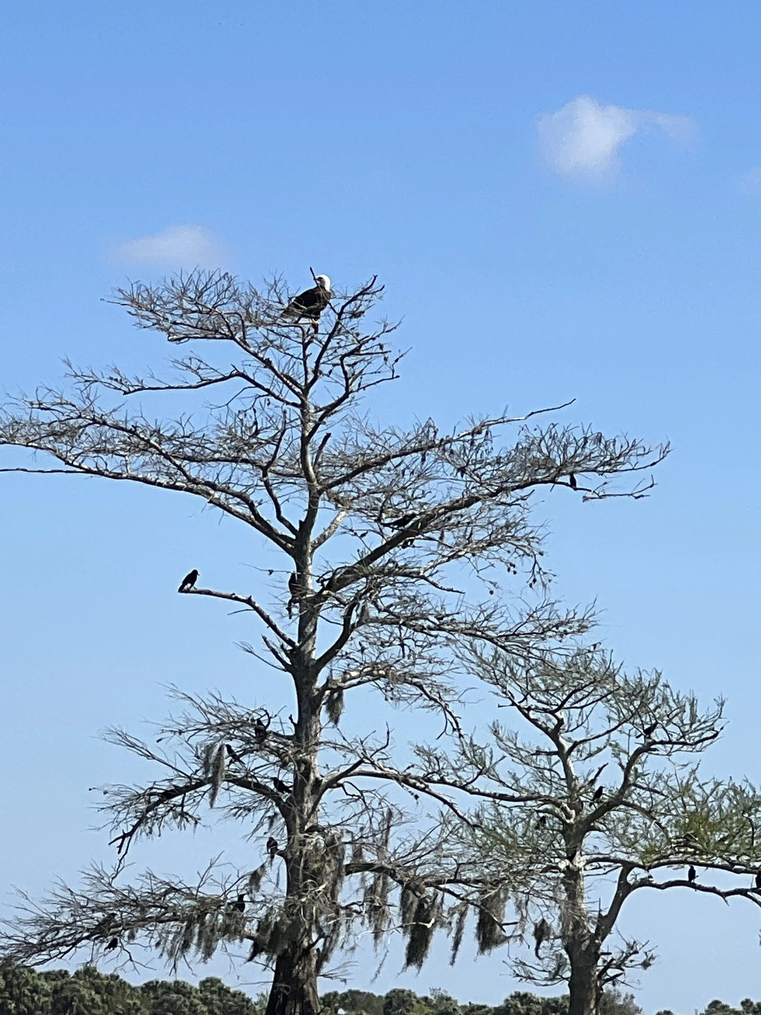 During our roughly one hour boat ride, we saw plenty of alligators of various sizes, some of which were massive, including one that circled the boat a few times and came with a few feet of the hull. A vast majority of them were sitting on the banks of the river. For these, the captain was able to get within 10 feet or so and spin the boat slowly so passengers on both sides could get a close up view. We were also lucky enough to see two bald eagles