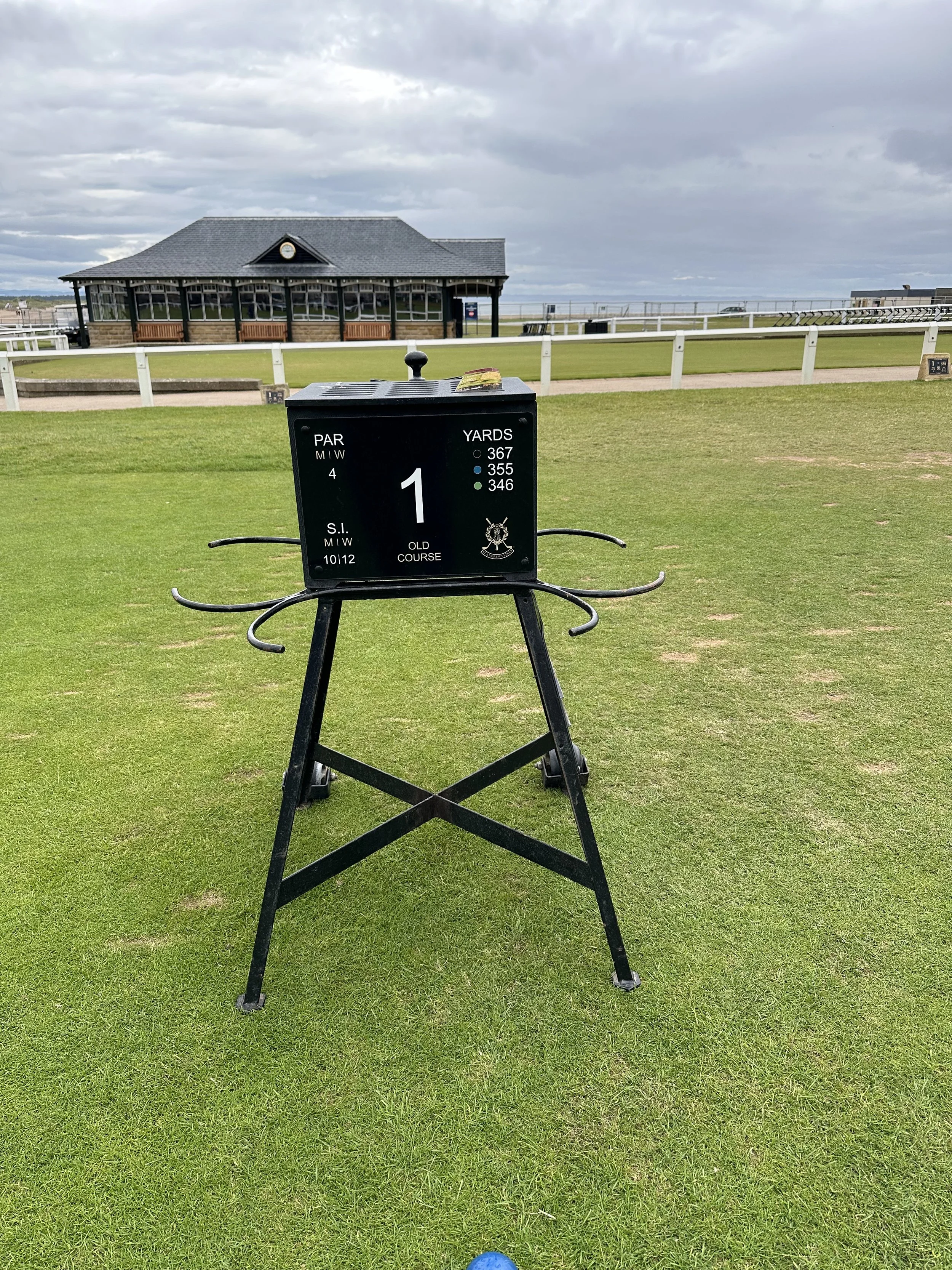 Checking in at the small starter hut, we were handed a small Old Course pouch with a few goodies inside including a pencil, tees, scorecard, and yardage book. It really started to sink in that we were getting ready to play the Old Course the moment we stepped onto the practice putting green right next to the first tee.