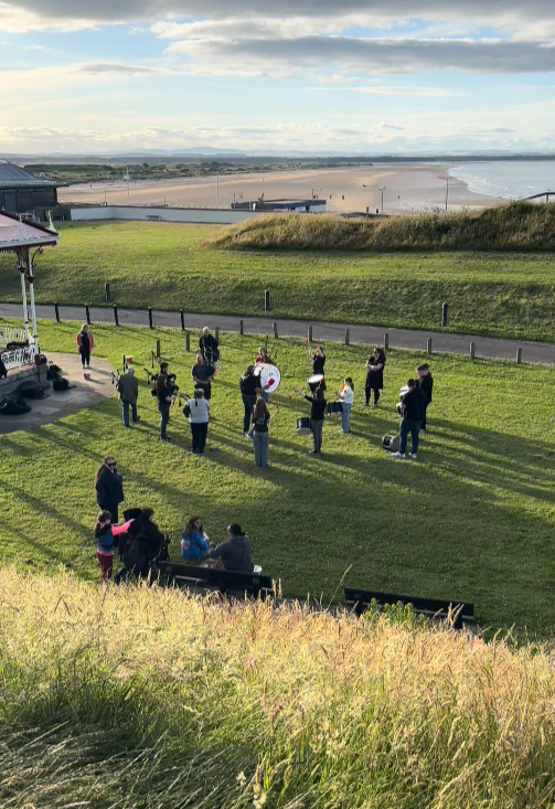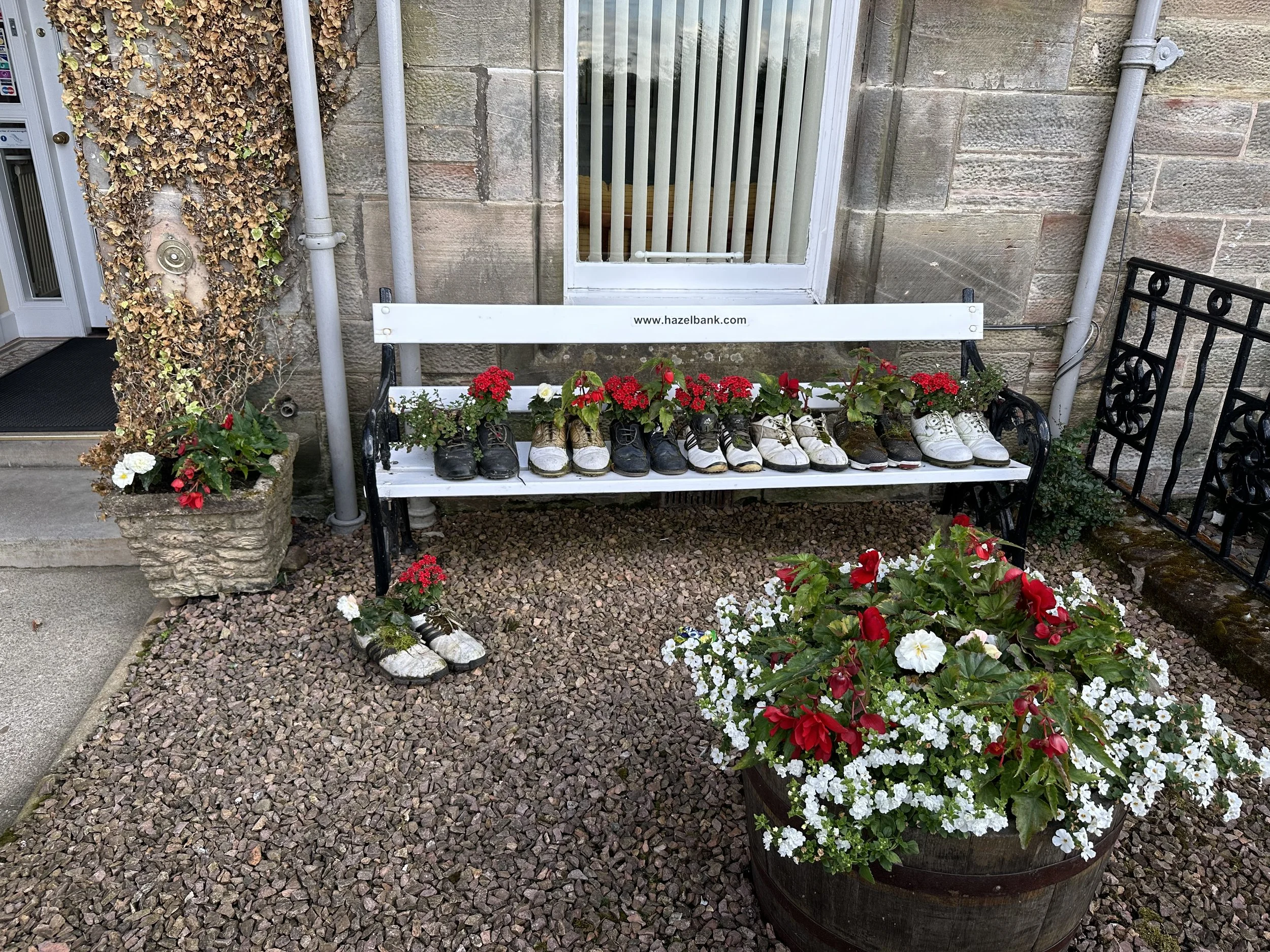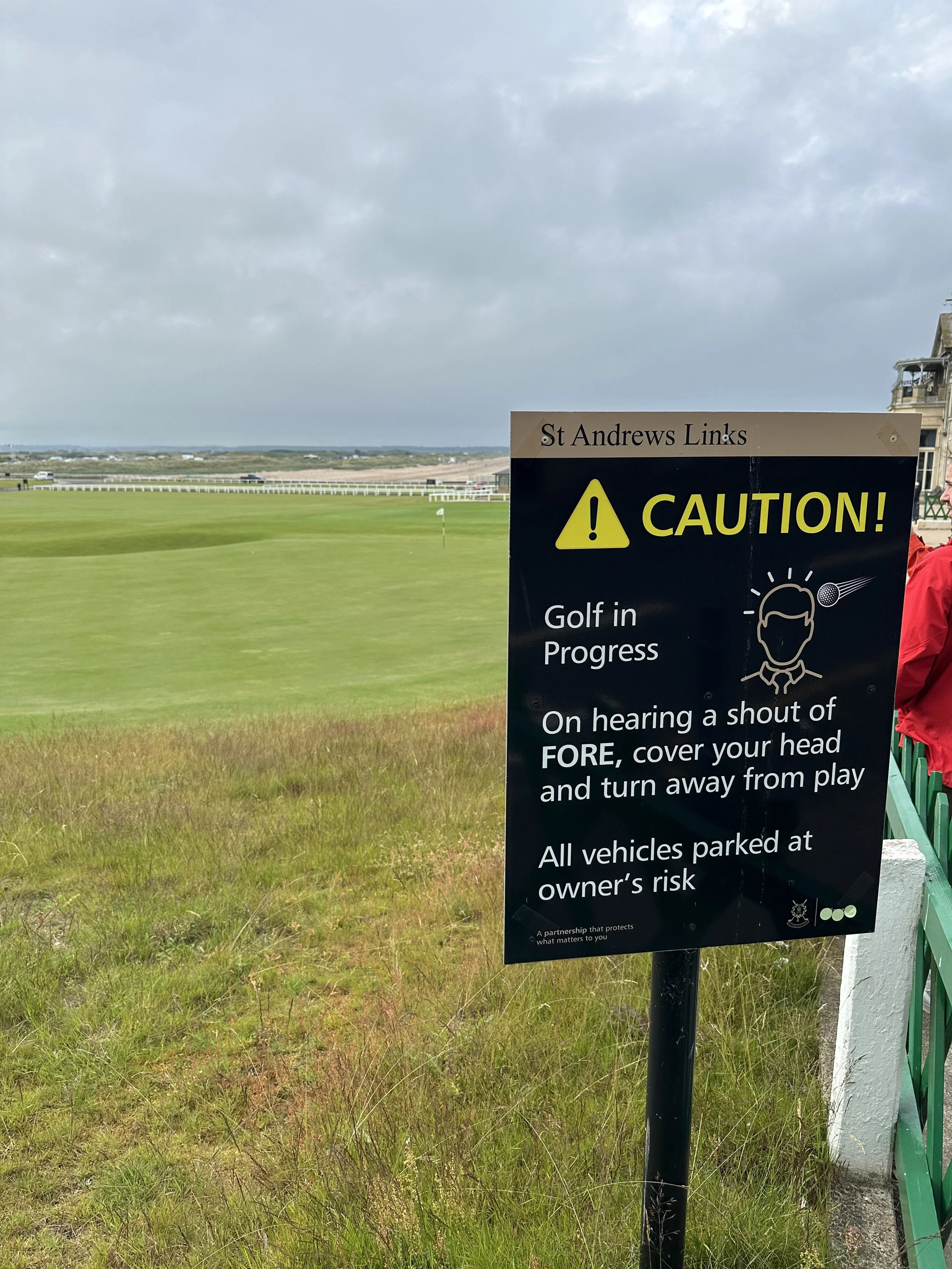 A lot of the things we saw don’t have any history to them but were cool to see so what follows are pictures of some of these sights. They include funny signs, flower planters using golf shoes, a rose garden dedicated to Queen Elizabeth’s II Diamond Jubilee, and even the St. Andrews band practicing (which we were drawn to by the sound of bagpipes).