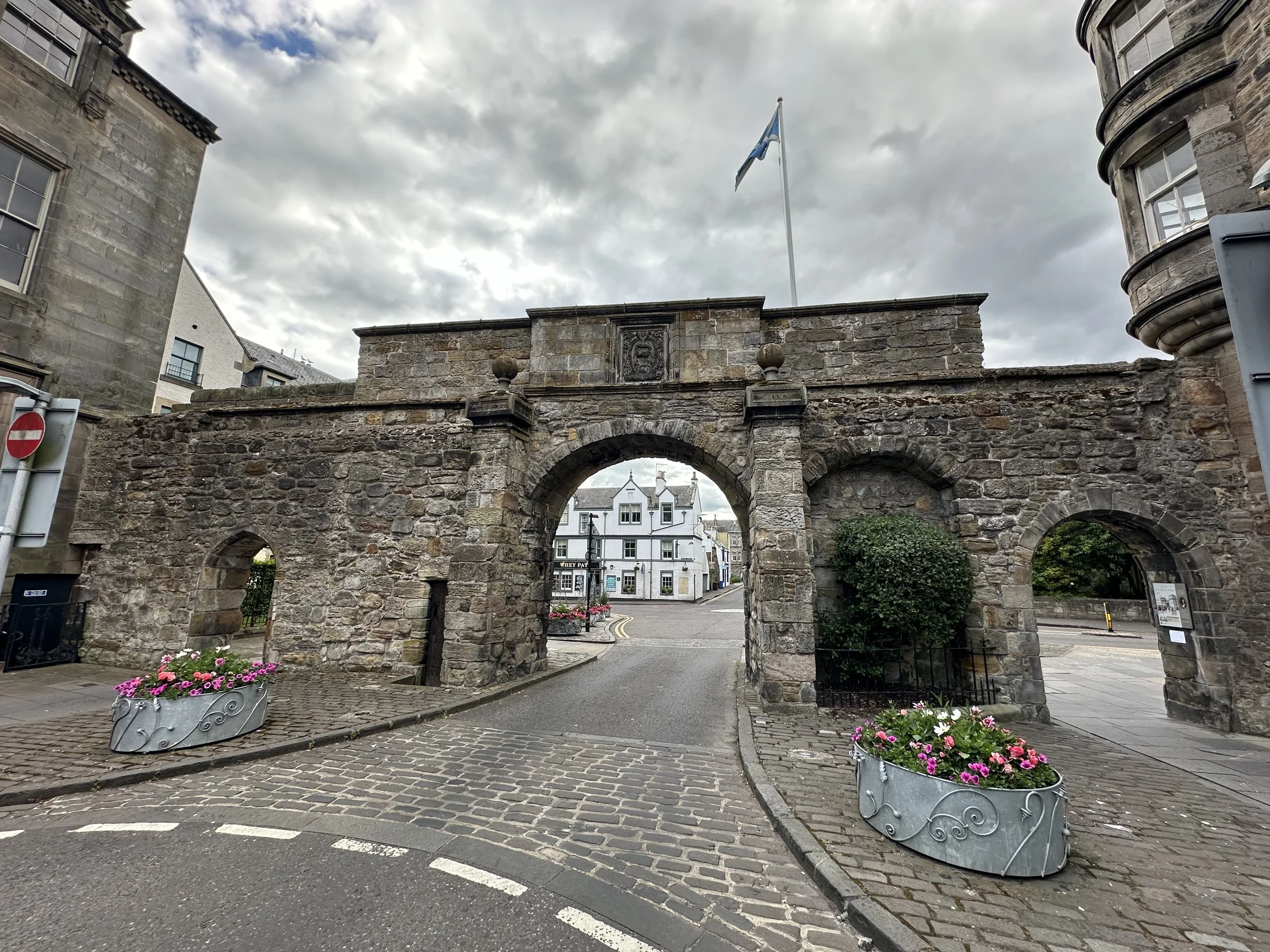 Per the website: the West Port of St Andrews was built in 1587 as a monumental entrance to the city’s South Street. It was less a defensive structure than it was a symbol of civic pride. Its design is based on that of the Netherbow in Edinburgh – which, in turn, was modeled on Paris’s Porte Saint-Honore. The gate was extensively refurbished in 1843 and is located at the junction of South Street and Bridge Street about a 10 minute walk south of the R&A Clubhouse.