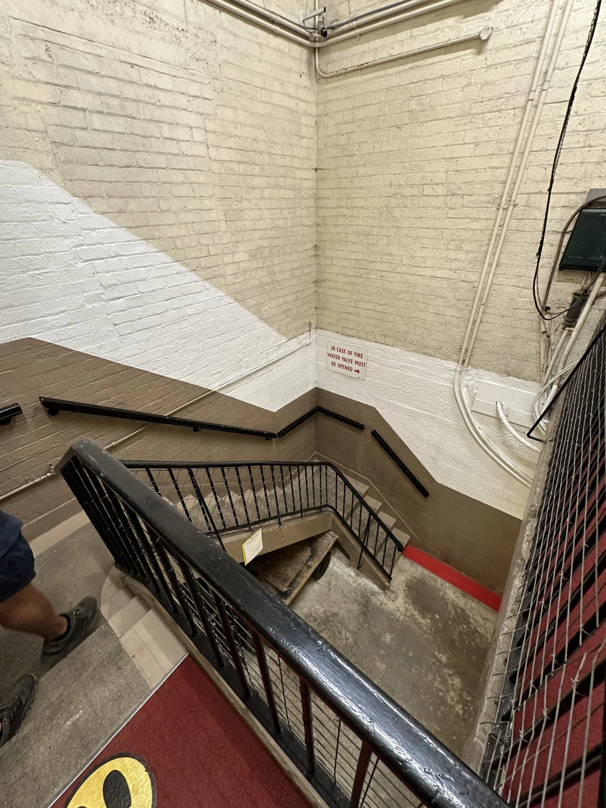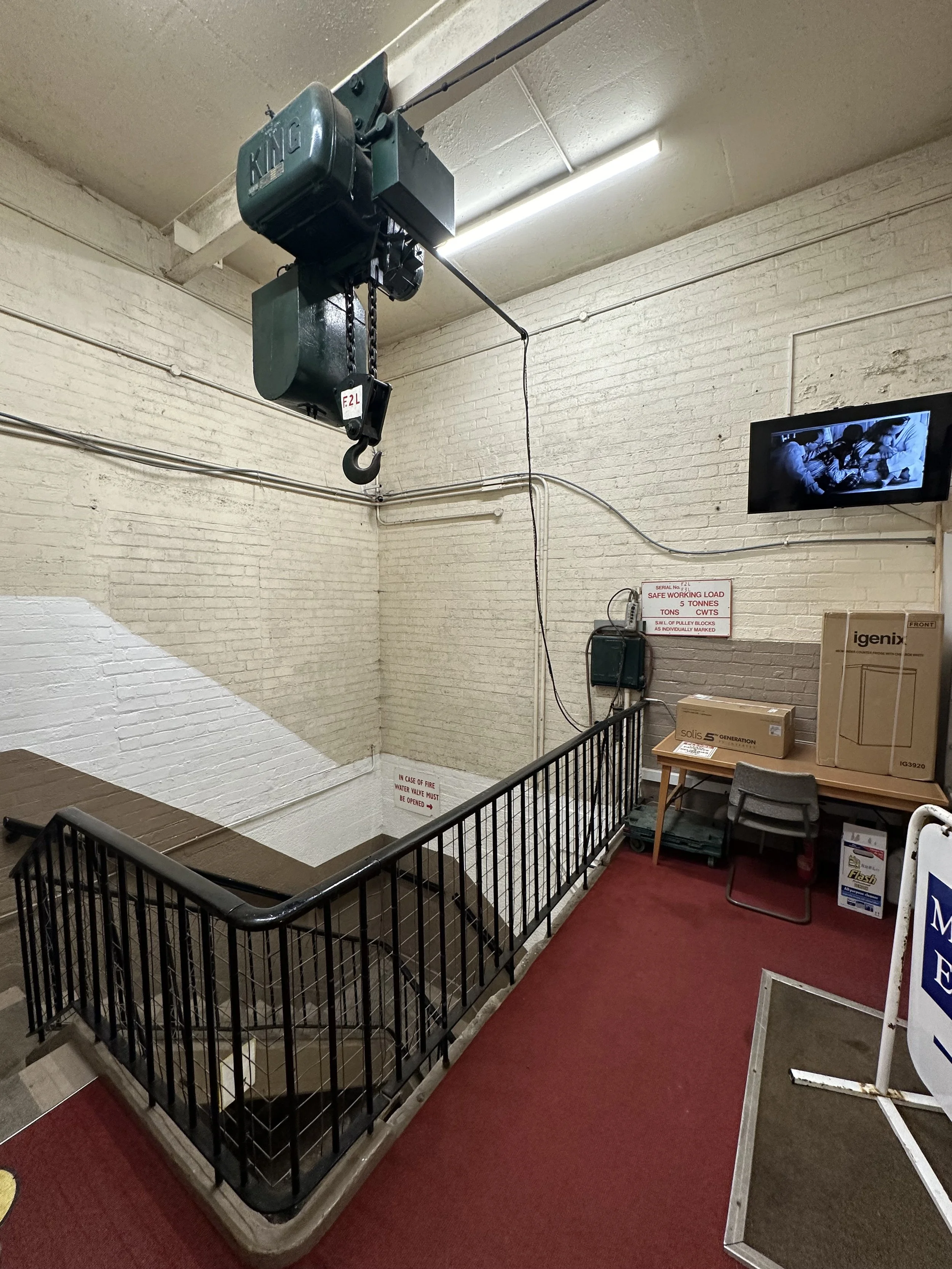 Once we entered the farmhouse, we were met by a small shop and counter where we paid our entry fee and were directed to a small doorway that led to a set of stairs. This was the main entrance to the bunker and had a hoist in the ceiling so they could lower heavy objects down into the bunker.