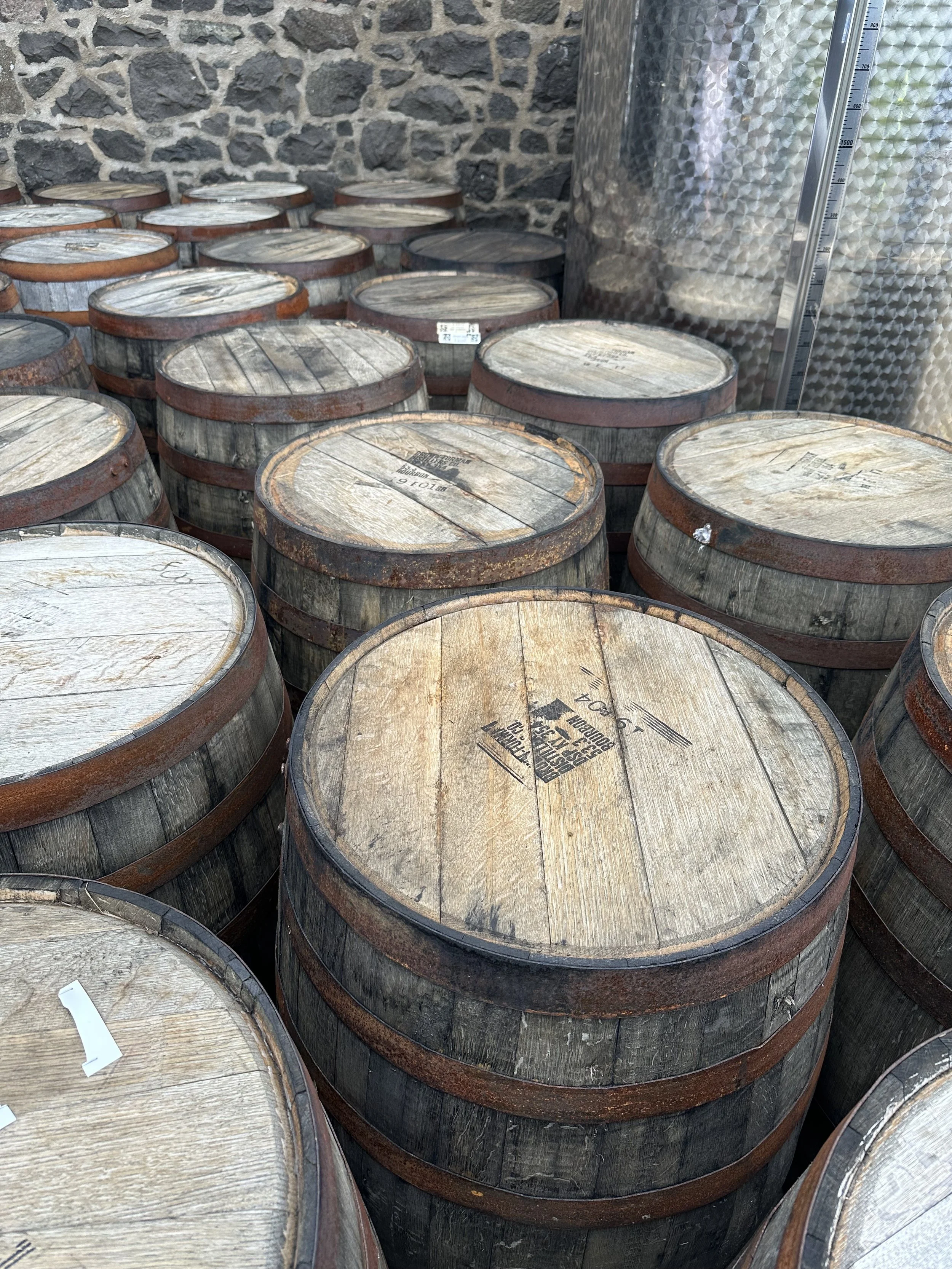After a quick history of the Abbey, we were then provided with a very detailed tour of the distillery that showcased every step of the process, from the grains arriving at the facility through the maturation process in the barrel room. At the conclusion of the tour, we were able to try two delicious drams for ourselves! Just outside the room with the racks of barrels, there were plenty of barrels waiting to be used. Upon closer inspection, most of these were former Bourbon Barrels from Kentucky, USA.