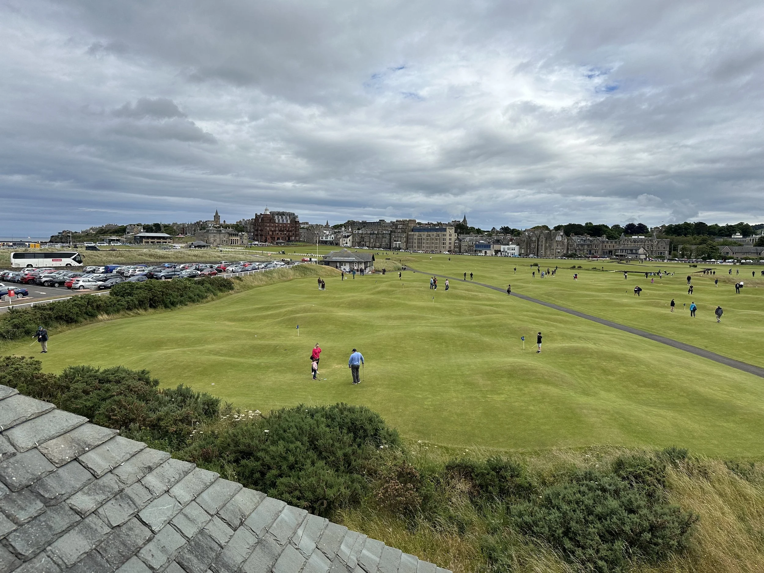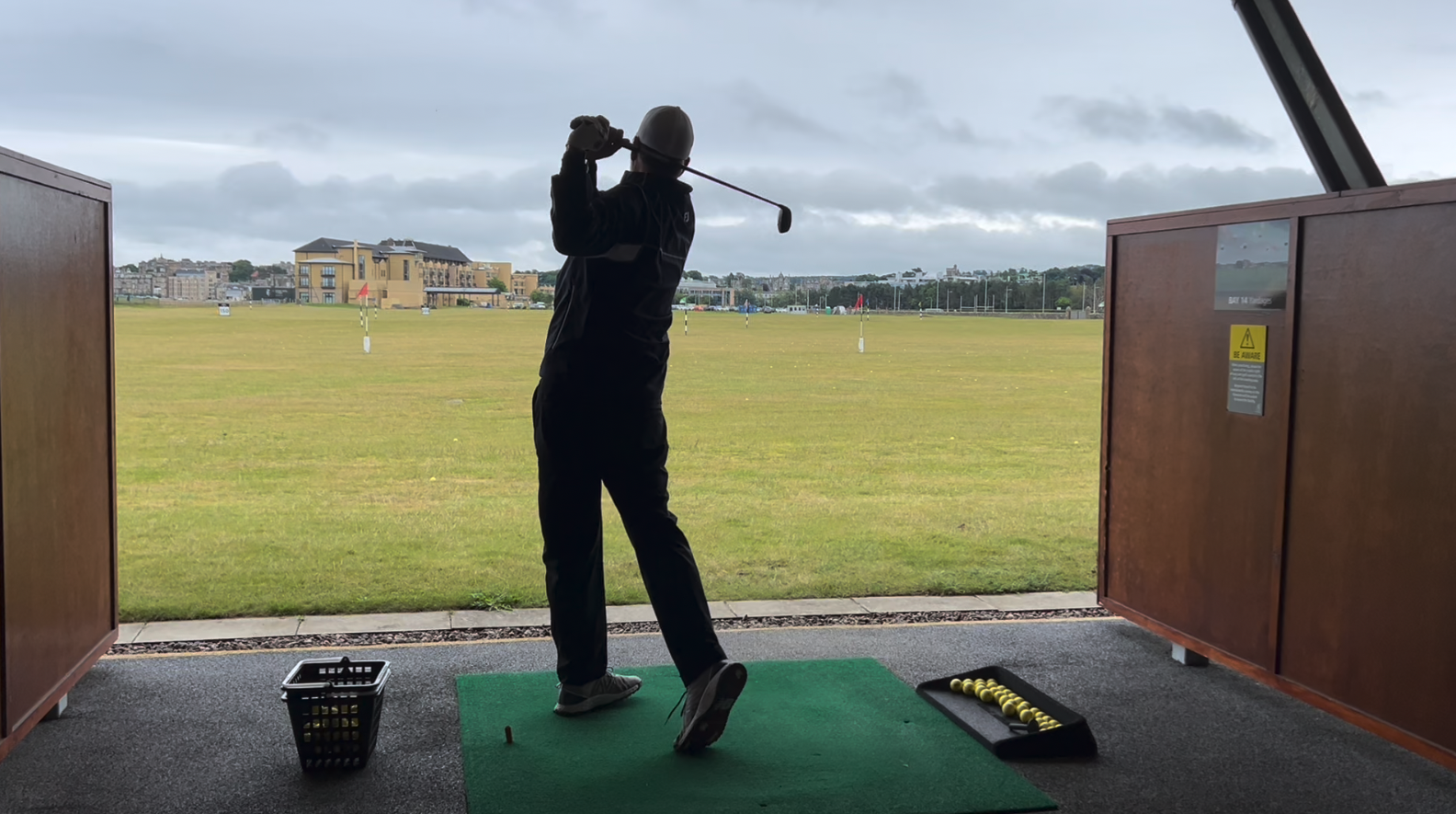 The driving range for all of the St. Andrew courses in town is located alongside the 16th hole of the Old Course. We didn’t use it before our round at the Old Course but we did hit some balls before our round at the New Course. About half the hitting bays are covered, heated, and include a Trackman system. We walked over that morning and were able to find an open bay pretty easily. They appear to have a world class teaching facility as well.