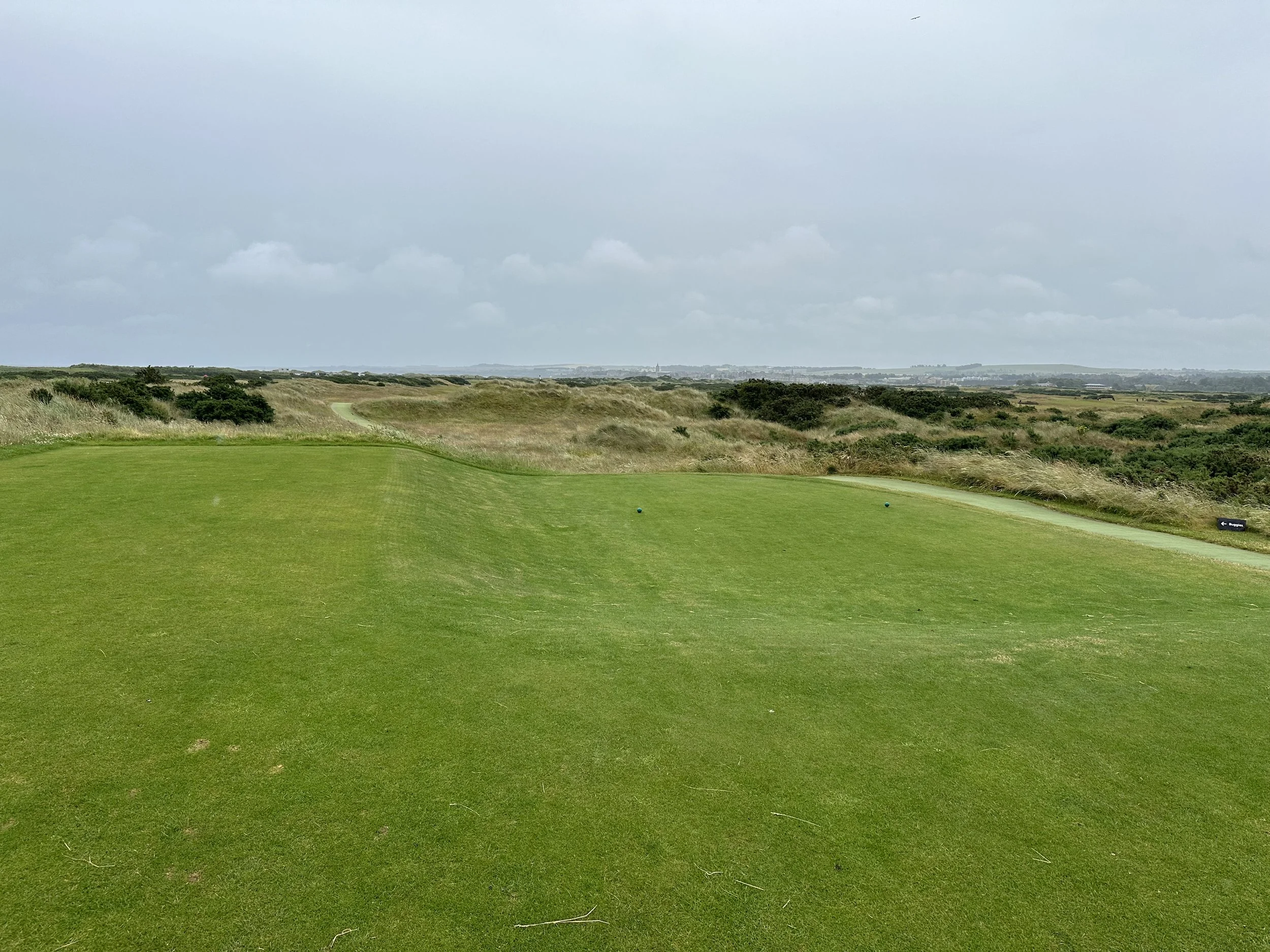 Quick note on the range and getting across the course, there are a few places people can cross the Old Course. We just had to be careful about not interrupting play. There is the street that crosses the 1st and 18th holes, a path that crosses in front of the 2nd tee and 17th green, and another path in front of the 3rd tee and 16th green. If you follow the paved road between the Old and New Courses, there are additional crossing paths but these are the three we used throughout the week.