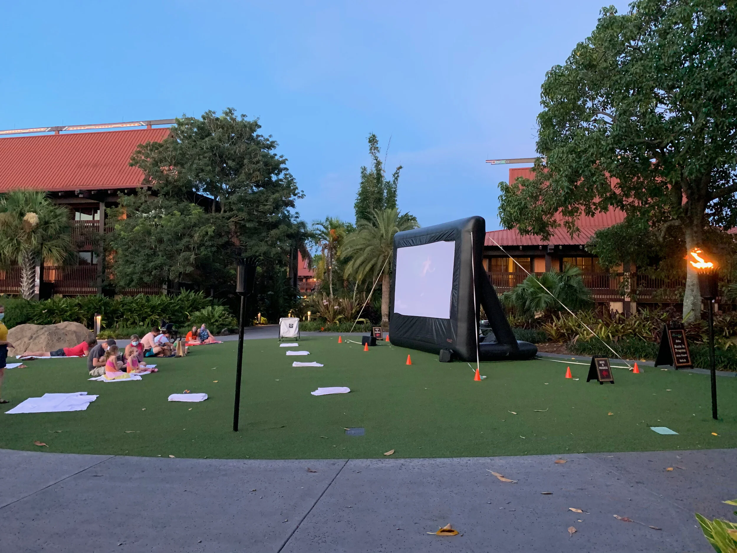 When venturing outside we found changes were less noticeable. The biggest thing we noticed were certain offerings being closed (such as some outdoor bars for example). It seemed certain seating areas had been moved and spaced out. We did see that some activities were still taking place but with social distancing (such as the movie night shown below). The hardest adjustment for us was wandering around the beautiful grounds outdoors and still needing to wear a mask, we have to admit it took away from the experience a little. We found when we went for a walk and were the only people around it was nice to take a little break, and then when we saw people in the distance we would put them back on. We also found many of the lounge chairs on the beach where people were relaxing were socially distanced enough that guests also took their masks off while enjoying sitting.
