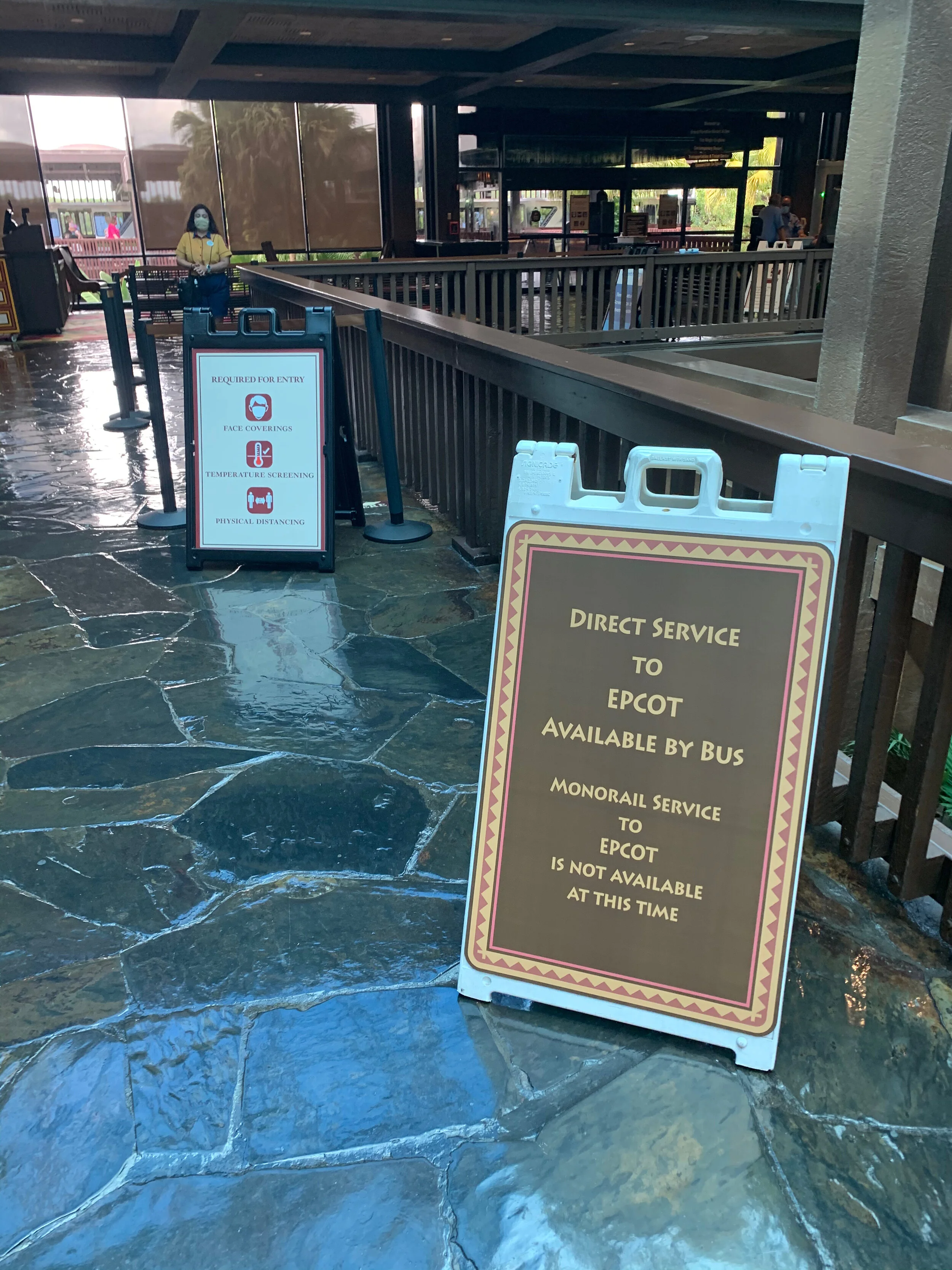 Monorail: monorails were limited to one party per bench. We had a cab all to ourselves. Currently the monorail was only available to the Magic Kingdom. It is not currently running to Epcot.
