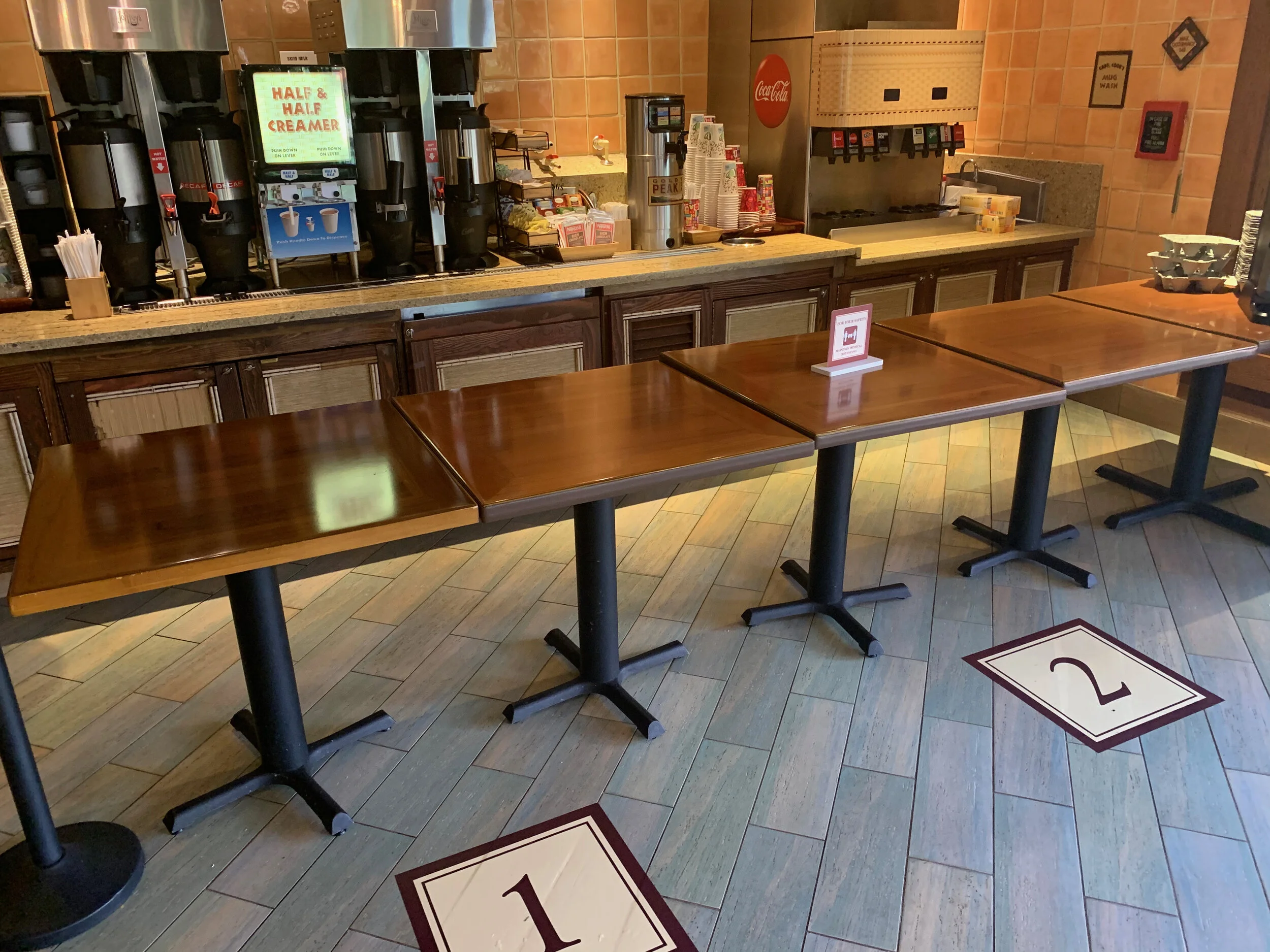 Certain areas are blocked off too. In the Grand Floridian you can no longer walk up to the bakery counter and food service areas, you speak to a cast member at an area of table barricades. There is also a Cast Member stationed at the beverage area to pour drinks for guests instead of the usual self service.